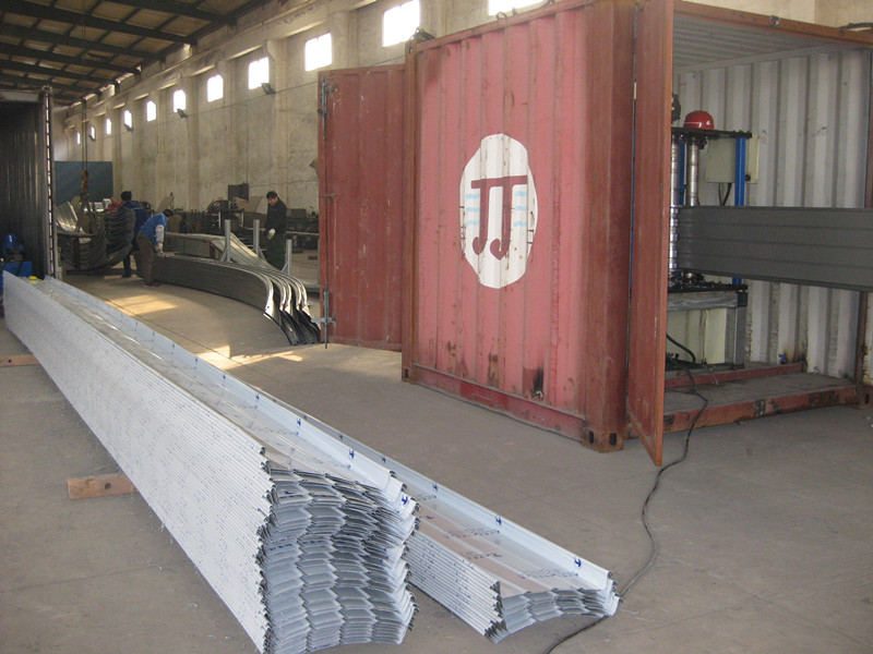 直立鎖邊鋁鎂錳:先直板再?gòu)澔;¢L(zhǎng)8.6m,拱高800mm。