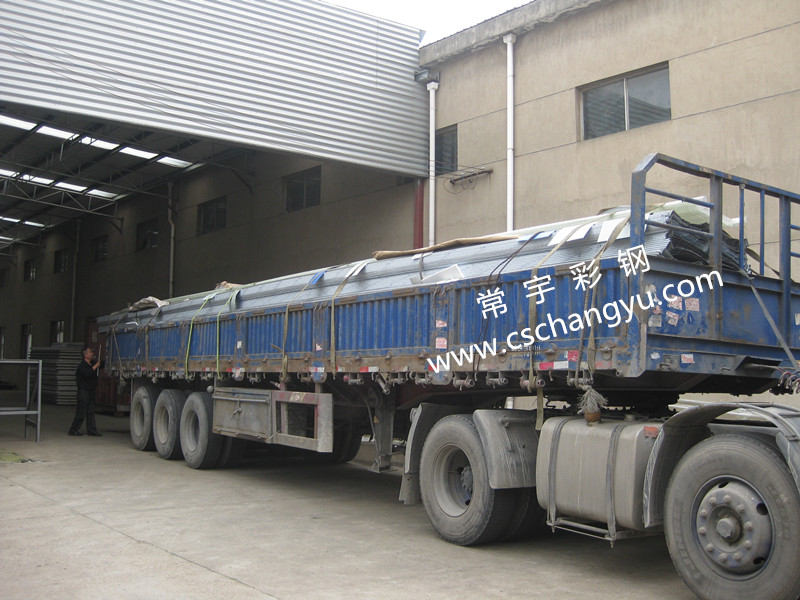 圖為長(zhǎng)沙常宇彩鋼直立鎖邊65/430鋁鎂錳板出貨:板長(zhǎng)達(dá)15米。顏色白銀灰。