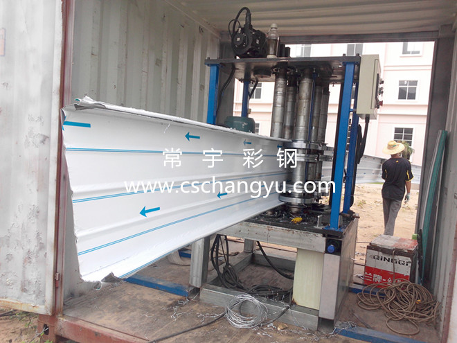 長沙常宇彩鋼至海南三亞現(xiàn)場加工直立鎖邊鋁鎂錳屋面板